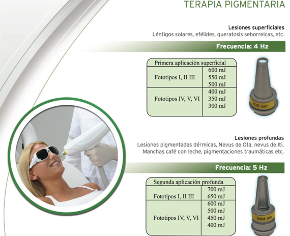 El láser de Q-Switch genera unos pulsos de energía con una longitud de onda específica, que actúa exclusivamente sobre las partículas de pigmentos, rompiéndolas en otras de un tamaño mucho más pequeño, dejando la piel integra.